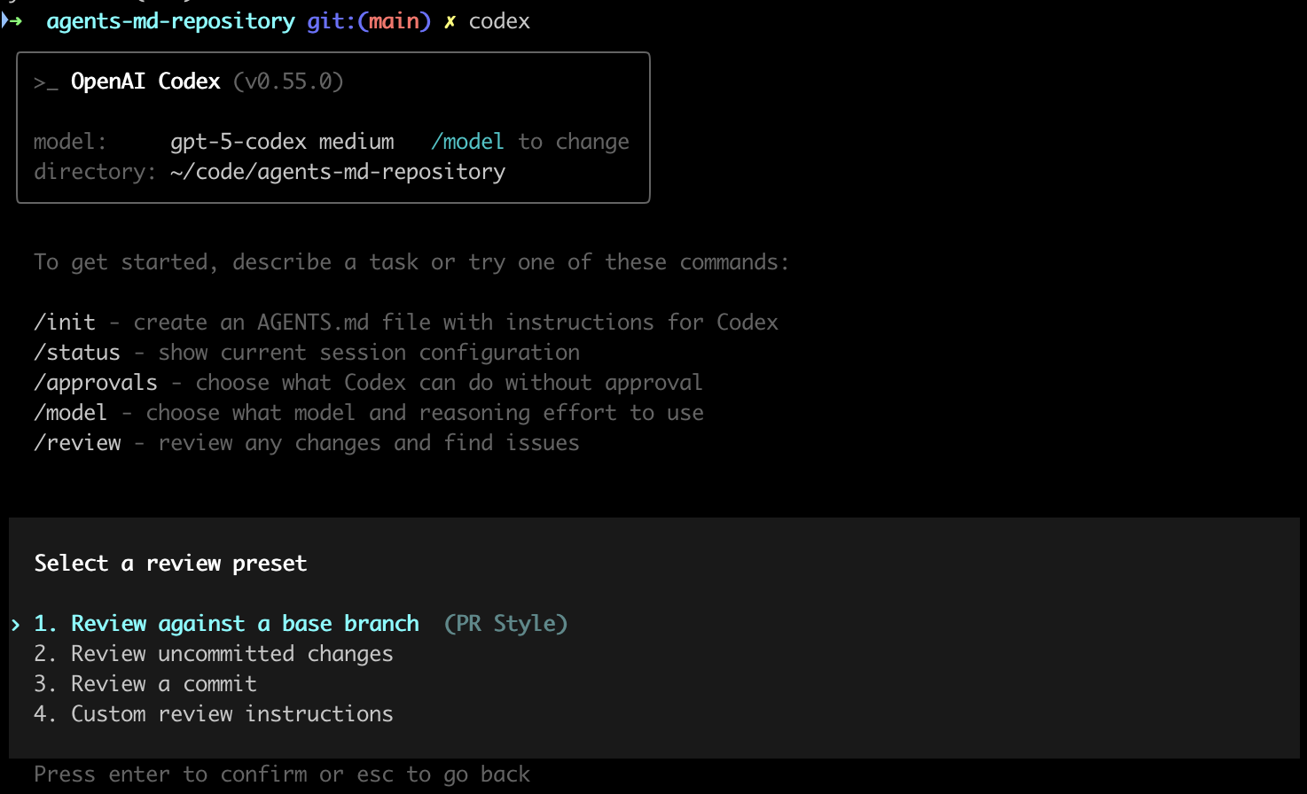 AGENTS.mdfiles:- Global (~/.codex/AGENTS.md) for personal defaults or safety constraints.