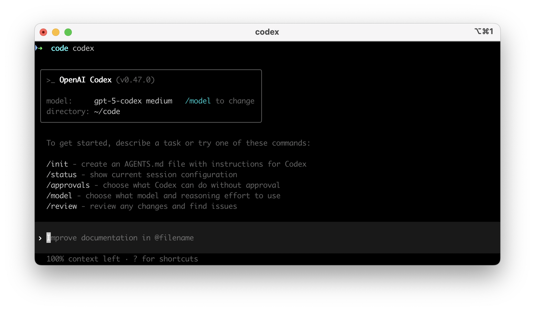 codex --version; expect at leastcodex-cli 0.53.0(baseline when this workshop was written—update if you're behind).